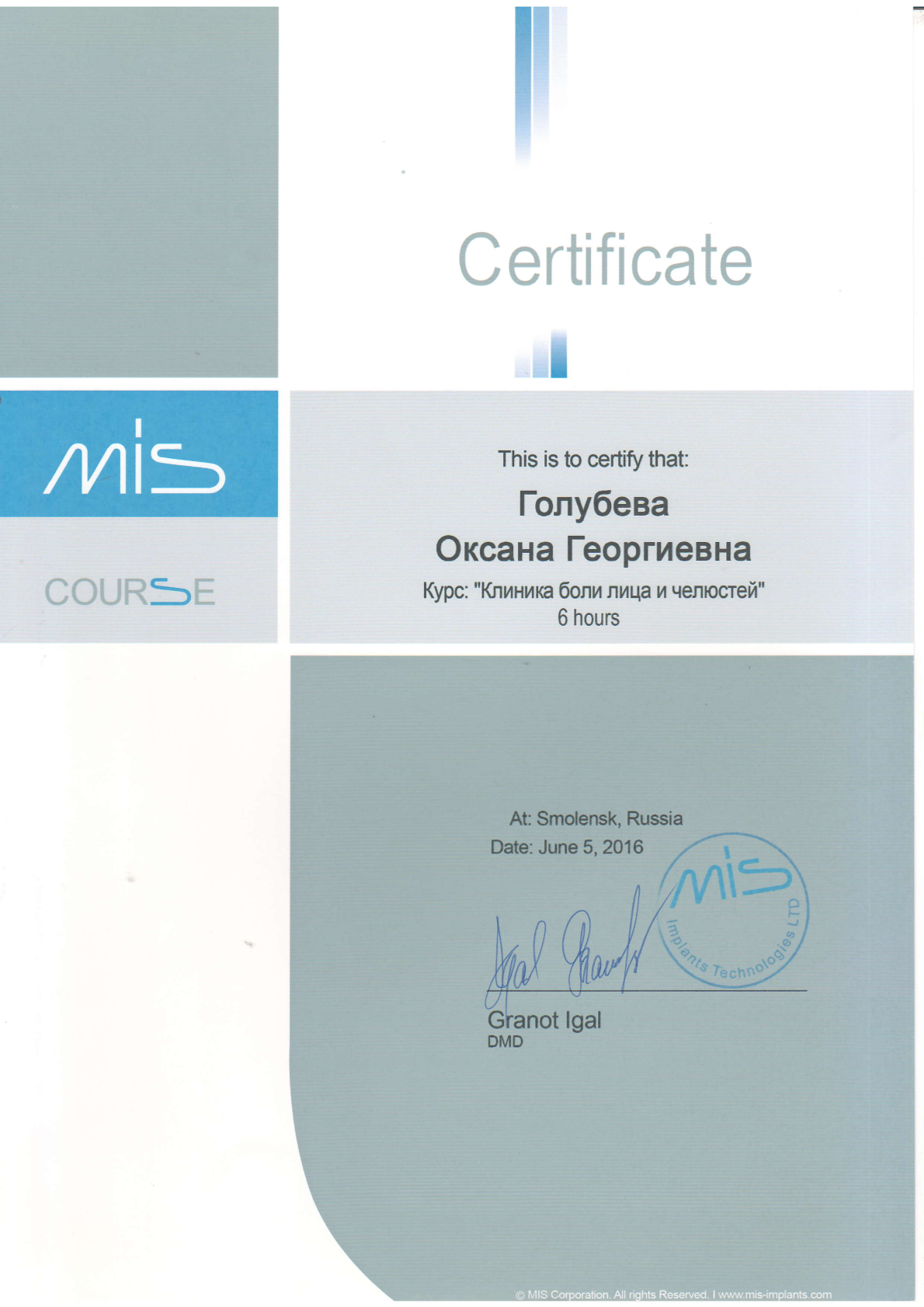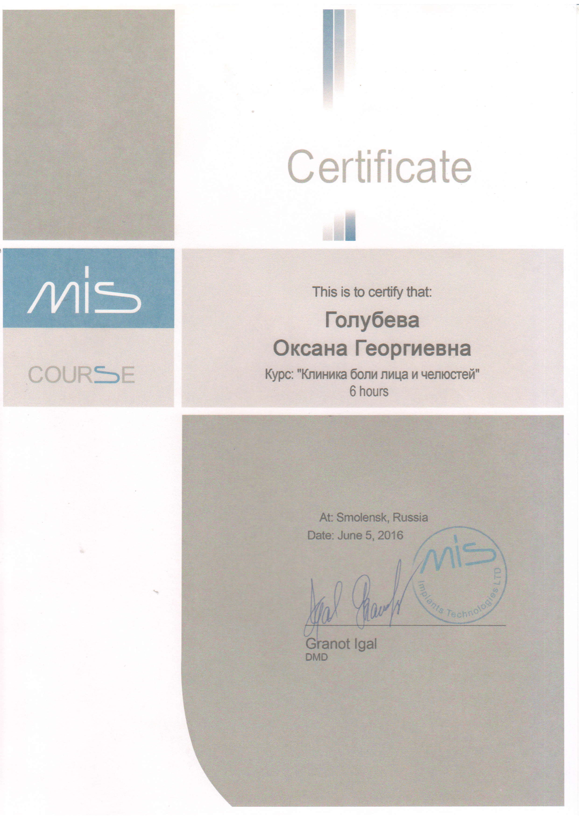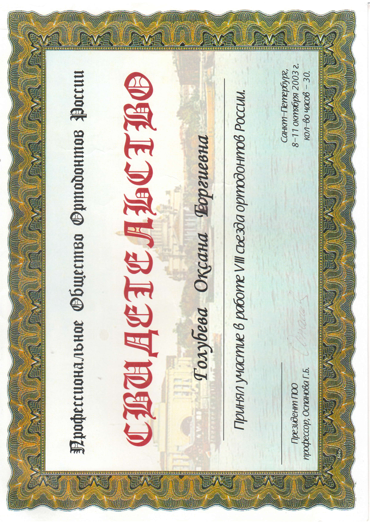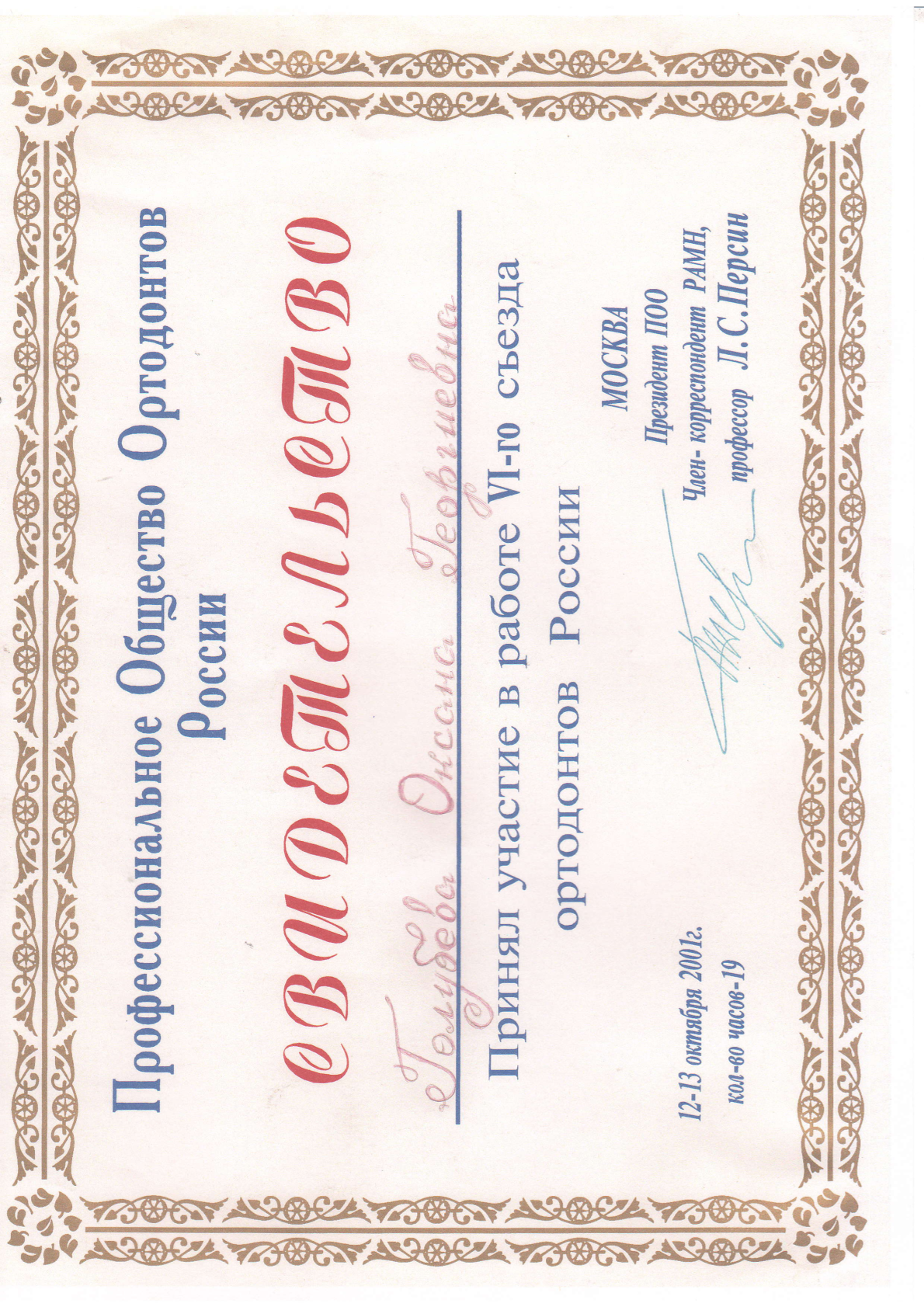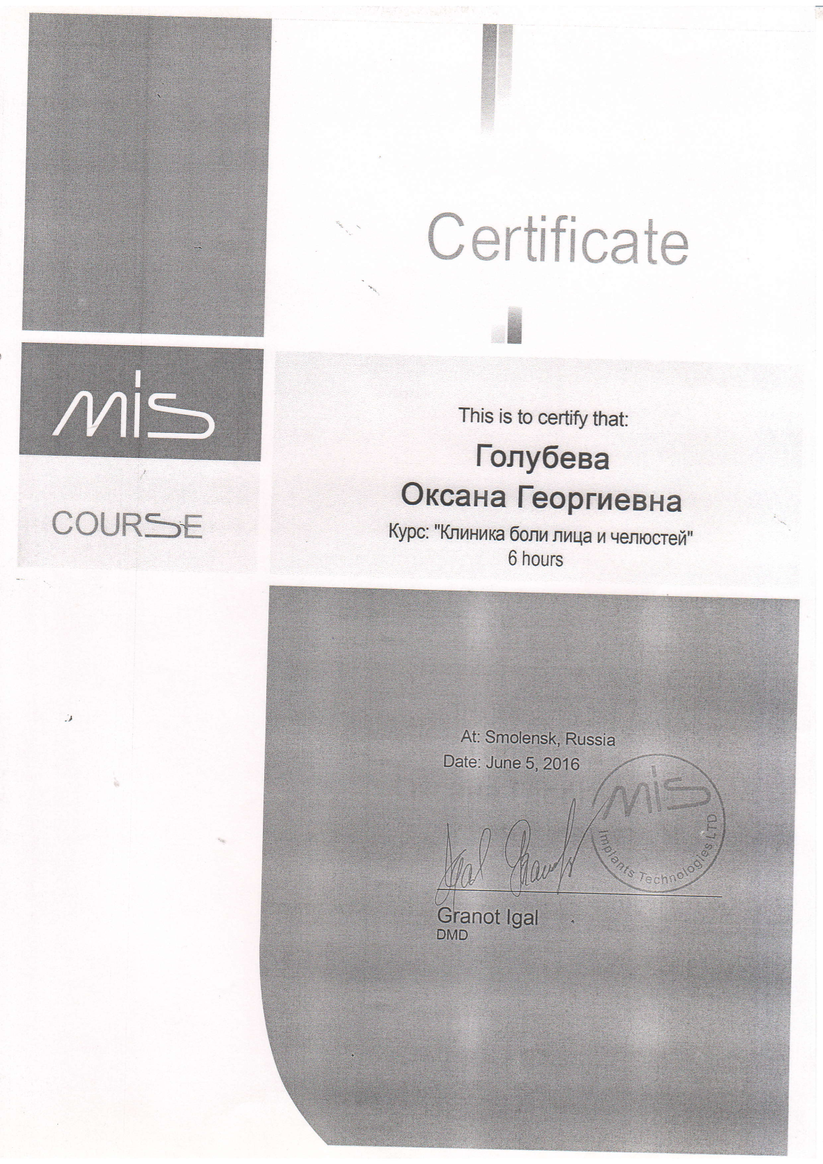 Высшее медицинское образование. Смоленский государственный медицинский институт, диплом №044812 24.06.1993 г., специальность «Стоматология» Интернатура: Смоленский государственный медицинский институт, специальность «Стоматология» 1.09.1993 — 28.08.1994 гг. Клиническая ординатура: 1995-1997 гг., специальность «Ортодонтия» Сертификат специалиста 1177181093149 от 30.11.2020г. «Ортодонтия». Удостоверение о повышении квалификации 771802730156 рег. номер 11/20-У9388 от 30.11.2020г. «Ортодонтия». Сведения о прохождении аккредитации специалиста: № 7725033695875 от 25.11.2025 года «Ортодонтия» • ВСЕРОССИЙСКАЯ КОНФЕРЕНЦИЯ "Стоматология в новых условиях хозяйствования", 29 сентября -4 октября 1997 года • 3M Unitek Seminar: NEW CONCEPTION IN ORTHODONTIC TREATMENT MECHANICS. MBT SYSTEM, 17-18 апреля 2004 года (Dr. Lars Christensen) • Участие в работе VII съезда ортодонтов России, 8-11 октября 2003 года • Участие в работе VI-го съезда ортодонтов России, 12-13 октября 2001 года • Семинар на тему: «Биомеханика и техника дозирования ортодонтической нагрузки», 10 сентября 2005 год года (Дмитриенко С. В.) • Micro Implant Anchorage Orthodontics The First International Conference "Microimplantation - future of Orthodontics" (Russian MIA). At support of company DENTOS Inc. - Worldwide Pioneers and Leaders in Microimplant Anchorage. Conducted at NORTA Co. Ltd, 28-29 октября 2009 года (Jae-Hyun Sung, Seong-Min Bae, Hee Moen Kyung • Training program on myofunctional correction products: TRAINER SYSTEM MYOBRACE SYSTEM TMJ SYSTEM POWRGARD SYSTEM developed and manufactured by MYOFUNCTIONAL RESEARCH Co. • Семинар на тему: «Физиологические и клинические аспекты лечения технологией ультраслабых сил», 14 октября 2006 года • Участие в работе VIII съезда ортодонтов России, 8-11 октября 2003 года • Курс: "Клиника боли лица и челюстей", 5 июня 2016 года (Granot Igal) • Участие в работе XVI Съезда ортодонтов России, 9-11 октября 2014 года • Учебный курс Жанны Ленденгольц "ТЕЛЕРЕНТГЕНОГРАФИЯ", 22 апреля 2017 года • Участие в VIII Международной конференции по ортодонтии "Современные технологии в диагностике и лечении зубочелостнолицевых аномалий", 11 - 12 апреля 2008 года • Тheoretical course ORTHODONTICS CONGRESS, 15-16 февраля 2020 года (WON MOON, MARCO ROSA, SEONG-HUN KIM)